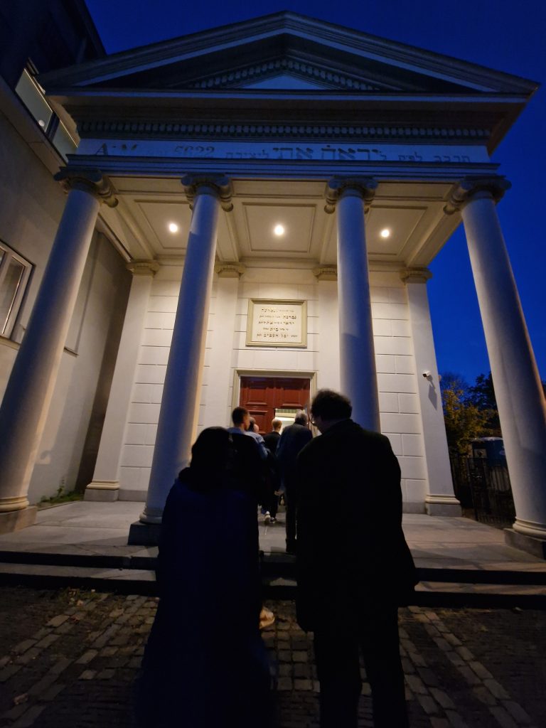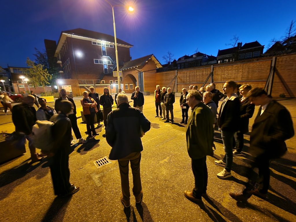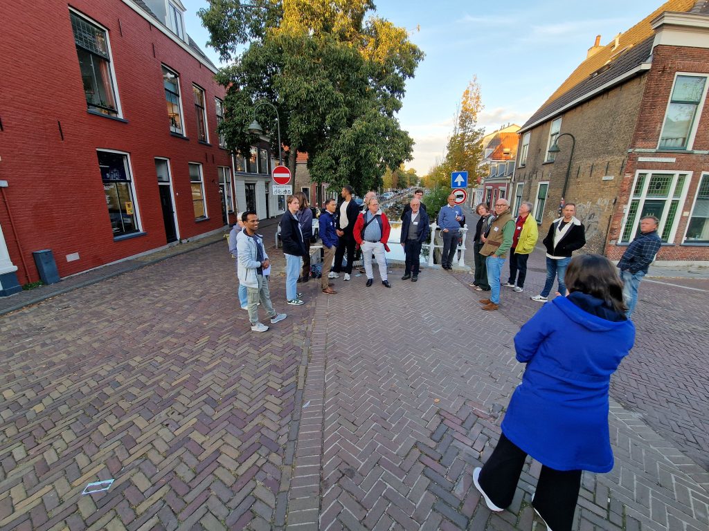 De groep gaat de brug over en stapt de synagoge binnen. Voor veel raadsleden een verborgen plek waar ze voor het eerst binnenstappen. In het Joodse gebedshuis horen ze over de historie van het gebouw en dat het al weer zo’n 20 jaar in gebruik is voor de diensten van de Joodse gemeenschap. De synagoge staat naast de Gasthuisplaats die flink overhoop ligt. Er wordt archeologisch onderzoek gedaan. Menselijke resten en muren komen tevoorschijn. Ze leggen bloot waar in de toekomst gebouwd en geplant kan worden.