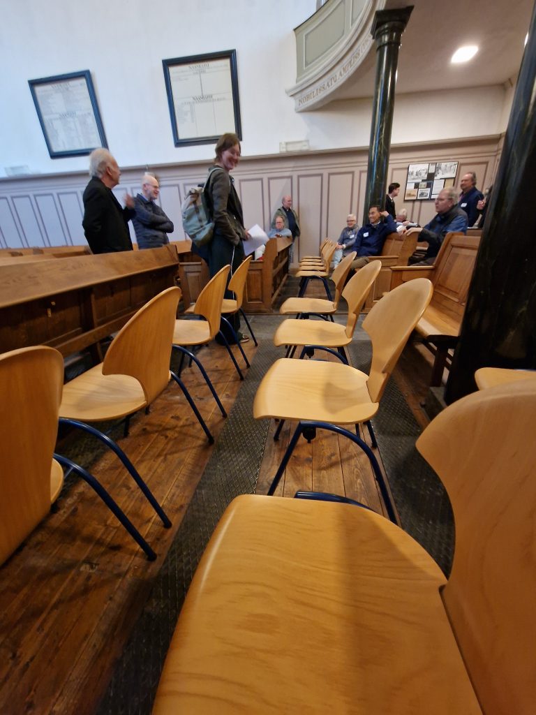Net zo stil als de groep raadsleden die in de Lutherse kerk luistert naar het streven van de kerkgemeenschap om het gebouw te behouden. Het belang daarvan staat beschreven in de Toekomstvisie Religieus Erfgoed. De vertegenwoordiger van de kerk legt uit hoe woorden omgezet worden in daden. Sinds een paar jaar laat de kerk weer van zich horen en luidt de klok van 9.00 tot 21.00 uur. Dat geeft een buurtgevoel. Het kerkbestuur wil het gebouw multifunctioneel gaan gebruiken. De houten kerkbanken gaan eruit en maken plaats voor stapelbare stoelen. Doodzonde van die banken, roept een bewoner. Nee, de banken gaan eruit en de zalen bij de kerk bieden ruimte voor bruiloften, concerten en uitvoeringen.