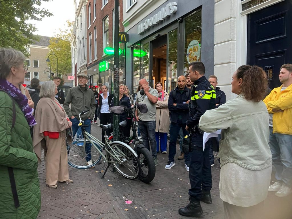 Bij de Leeuwebrug op de Koornmarkt roept de voorzitter van Belangenvereniging Oude en Nieuwe Delf de raadsleden op om bewoners zo vroeg mogelijk bij plannen van de gemeente te betrekken. Er zit hier zoveel kennis in de binnenstad, zegt hij. Bij de warmtepompen ging het goed. Net als bij het isoleren van monumenten. Bewoners werden heel vroeg betrokken. En ja, de gemeente moet ook werk maken van het fietsparkeren. Die oproep klonk eerder die avond ook bij het Rietveld. Er liggen wel plannen, maar de bewoners willen zien dat er iets mee gebeurt.
